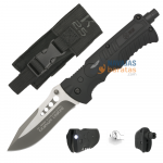 La navaja táctica de rescate K25 Hoja Titanio es una herramienta indispensable para profesionales del rescate, seguridad y entusiastas del outdoor. Su hoja de acero inoxidable con baño de titanio de 9,2 cm ofrece máxima resistencia y precisión, mientras que su mango recubierto de goma negra garantiza un agarre seguro y cómodo. Equipada con punta rompecristales y linterna, es una opción ideal para situaciones de emergencia. Incluye una funda de nylon para transporte y protección eficiente. MADE IN CHINA